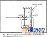 从后方传来的声波通过两个路径到达传声器的振膜位置:1)绕过传声器腔体后到达振膜前端入口,2)通过后端入口和相位偏移网络。声音信号被加入了由于声波辐射需要绕过传声器腔体所产生的外部延时和相位偏移网络产生的内部延时(图7)。