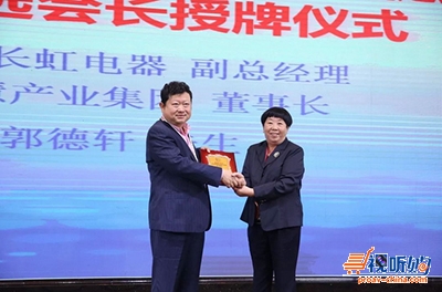 会议正式开幕后,深圳商显产促会名誉会长白为民女士为产促会新当选会长——郭德轩举行了授牌仪式。在峰会前一天(16日),深圳商显产促会召开了一届四次理事会,理事会正式选举了四川长虹电器副总经理、长虹智慧产业群董事长郭德轩先生为新任会长。理事会一致推举杨东文先生担任创始会长。