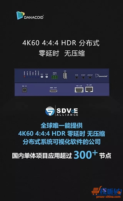 我们都知道,接口机主要是数据库层面的,在两个或多个不通/同系统之间,数据库的表结构,字段定义,字段类型都可能不一样,接口机的作用就是A送来的数据按B的需求进行规范再送给B。通过接口机把传统的视频信号转化为数字信号。如此,输入端与输出端的链接就被简化为了交换机之间的互动,而交换机之间的互动,仅仅通过网线/光纤就能实现。DANACOID这套4K604:4:4 HDR分布式系统采用了7类网线/光纤来达到信号的高速传输需求,从而实现零延时,无压缩。这就是音视频系统的IP化。