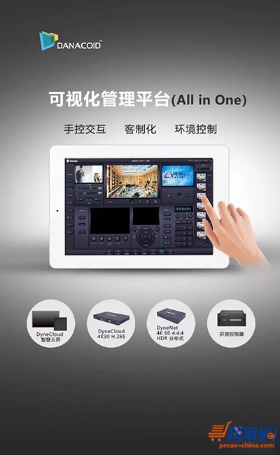但是,仅仅硬件设备的IP化,并不是真正的全网络化。这个时候需要一个友好的操作界面使我们能够像对待智能设备一样,轻松地对音视频系统进行操作、控制。为此,DANACOID专门针对不同的客户定制了一整套分布式可视化平台管理平台。用户仅仅通过自己的智能设备,就可以对系统进行控制。