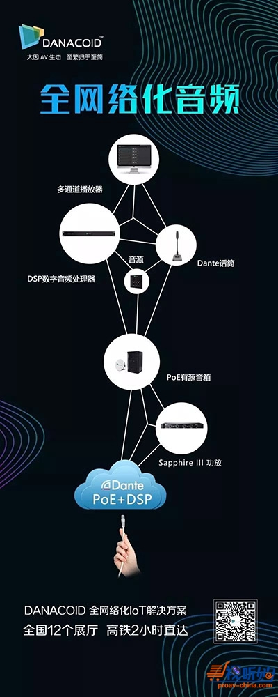 DynePro系列是DANACOID的全网络化音频产品,这一系列只需通过一根网线即可实现供电、传输、管理和控制三大功能,这主要得益于Dante协议(已获Dante原厂授权)和PoE供电技术。