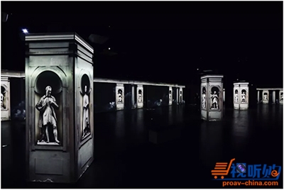 总的来说,这是一个三维立体投影画面包围的沉浸式观展环境