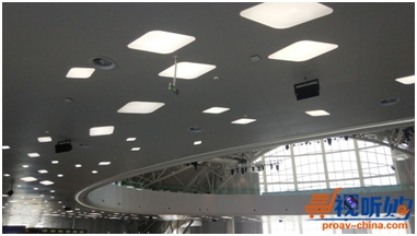 由于观众区面积较大,同时观众厅一层因挑台对主扩声扬声器直达声的遮挡较为突出,为消除一层观众厅直达声盲区,确保整个听音区的声压级和声场均匀度,一层补声采用多只点声源扬声器EAW MK8196i于挑台下方吊挂安装;
