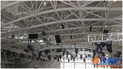 为了拓展低频下限,共采用多只超低频扬声器EAW SB528zP,沿着圆心舞台吊挂安装。