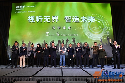 2019广州国际专业灯光、音响展览会(下称广州展)答谢晚宴于12月12日在广州广交会威斯汀酒店圆满举行,约500位厂家、分销商、协会代表等行业人士及媒体如约而至。席间,主办单位表示广州展13个展馆的展位已全部售出。