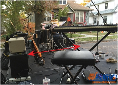 图5是吉他音箱/放大器(也适用于键盘放大器)的典型定位。吉他手站在前面1m (3.3英尺)处。这样的安排有什么不妥呢?