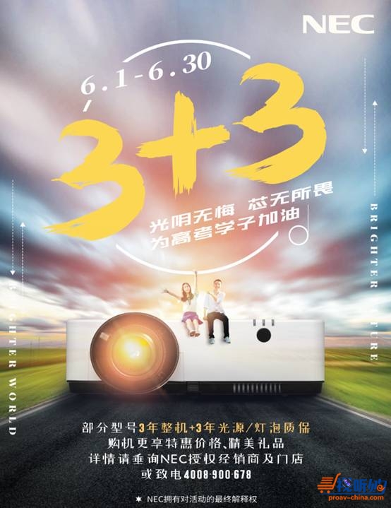 《5年高考3年模拟》大家都很熟悉,是以近五年的高考真题和近三年的优秀模拟试题指导考生冲刺的辅导书。NEC今年推出的“3+3”超长质保计划,对旗下“空•灵”液晶激光和CR2200U等新品系列,承诺3年整机+3年光源/灯泡质保的超长质保服务,堪比行业教课书级“实用”售后服务, 将带给用户更为安心的购买体验。