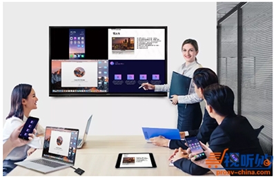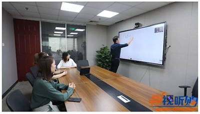 在本地会议中,与会者可以用newline大屏轻松书写、擦除、标注、插入流程图、表格等,并应用百度在线搜索、无线文件传输、大小屏协同等功能;通过无线传屏功能轻松分享手机、平板电脑或笔记本电脑中的图片、视频、文档等资料,并可四路画面同时无线传屏显示,每个画面均为1080p,效果清晰。并且,会议结束时,与会者可一键扫码,便捷带走会议记录,会后复盘更轻松