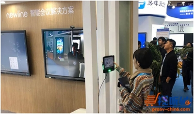 展区中newline会议平板,现场演示智能、易用的视频会议与远程协作方案,与此同时无线投屏、批注功能、白板书写以及一键扫码带走会议记录等功能,让参观者直观感受“高效率沟通协作”。