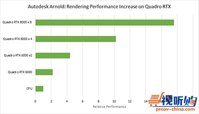 通过最新的更新,基于NVIDIA RTX GPU的渲染速度比典型的双路CPU渲染服务器提升了数倍。