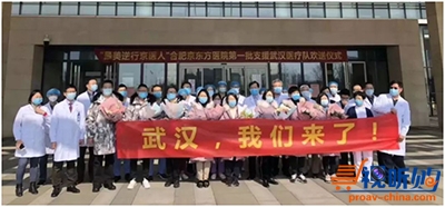 大家好!在举国上下共抗疫情的关键之期,你们积极践行京东方人的奉献精神,主动响应国家号召,挺身而出,迎难而上,将做为京东方第一批援鄂医疗队奔赴武汉,出征迎战!在此,我代表京东方集团全体干部员工对您们致以崇高的敬意和真诚的祝福!