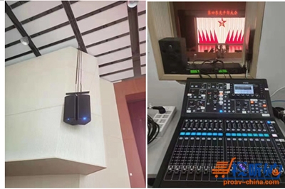 该多功能体育馆高度将近十米,带演艺小舞台,平常可做各类报告会,也可以满足不同种类的小型演出需求,观众场地也可以满足羽毛球、乒乓球、篮球等体育活动。在这种多功能场所,良好的指向性和较宽的频率响应是扩声系统根本要求,同时基层连队的操作人员不是专业的调音师,因此简洁和易操作的系统更是甲方的需求。针对这种情况锐声工程师为多功能体育馆在舞台两侧设计了各2只JBL PRX835W三分频智能有源扬声器,吊挂在八字墙两侧,地面摆放四只JBL PRX818XLF高功率有源超低音,舞台上设置4只流动的JBL PRX812W有源返送扬声器,由于所有的扬声器都是自带功放和内置扬声器处理DSP,所以不需要功放机柜,减少了管理维护环节。12只JBL PRX800W有源扬声器的管理通过一台RAMAUDIO ADM2048处理器做声场处理,系统还配置了一台英国MIDAS M32R数字调音台和一台DL16舞台接口箱,通过网线将信号传输到舞台端,节省了布线的时间。
