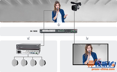 在许多专业视音频安装中,音频质量与视频性能同样重要。IN1808系列产品非常易于访问,能灵活地处理音频信号。来自麦克风或音乐播放器等信号源的音频可嵌入到视频输出。存在于视频输出中的音频可以被提取和路由,以进行额外的处理或放大。