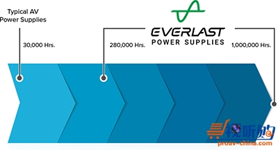 Everlast™电源由Extron自主设计及生产,采用超高品质的元器件以及高效的现代电源拓扑,提供了热量管理、晶体管开关、能量耗散和电源系统的其它各项重要功能。每个Everlast电源都与我们获奖的高端视频产品一样经过严格的测试以及细节方面的精心设计。该电源享有7年质保。