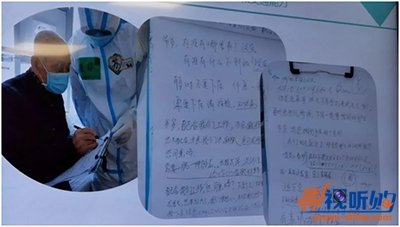 93年出生的殷非,是今年“南京青年五四奖章”的获得者。他最初怀揣着不安的心情出发。当看到病患的无助时,感叹幸好自己来了。面对90高龄的病人,他常在病床边以文字交流,他们在一笔一划中结下了深厚的祖孙情。