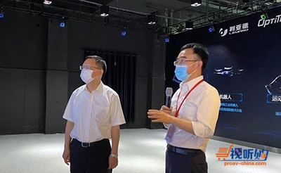 在参观利亚德集团展示中心时,利亚德集团副总裁、首席运营官姜毅向与会领导们介绍了利亚德在超高清智能显示、LED创新应用及创意展示等5G+8K超高清视频技术创新成果。