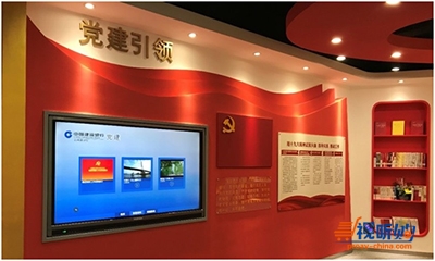 航空二院党建活动室,环境简洁大气、庄严肃穆。newline智慧党建屏将传统展示与信息化技术结合,充分满足“两学一做”、“三会一课”、学习座谈、入党仪式等需求,主讲人可直接打开各类文件及软件,以及进行远程党建会议。