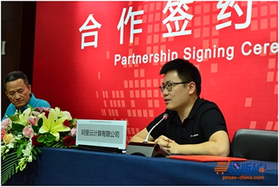 深圳台电总经理周庆东(左)与阿里云通用事业群副总裁徐栋(右)代表双方签约
