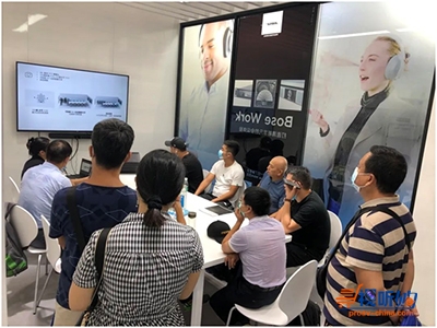 会议室内,正由Bose技术工程师为大家讲解Bose Work解决方案与实用场景。
