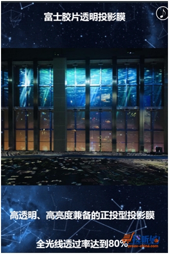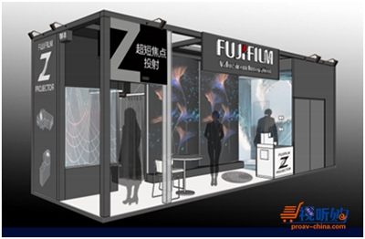 富士胶片将展示最新发布的FP-Z8000投影机和高透明、高亮度兼备的富士胶片透明投影膜,通过各种演示方案来表现产品的特性,如:不移动机体,只旋转镜头从而实现多角度投影,以及在受限空间中,通过大范围镜头位移即可轻松实现大画面投影。