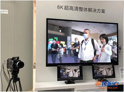 在展会现场,一台8K摄像机记录着前来参观的人群,采用京东方8K视频软编解码算法以及HEVC/H.265视频压缩技术,可以实时处理拍摄的8K影像,通过稳定的低时延宽带传输技术和领先的实时解码技术,将压缩的码流还原成原始8K视频,让人们在8K显示屏前就能观看到现场实况,感受超高清显示带来的极致震撼体验。