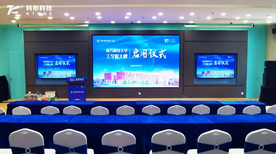 2020年10月17日,南方科技大学工学院大楼启用仪式在新落成大楼的八楼报告厅举行。校党委书记郭雨蓉宣布工学院新大楼正式启用。现场,由科彤提供的新型COB微间距显示屏全程助力。