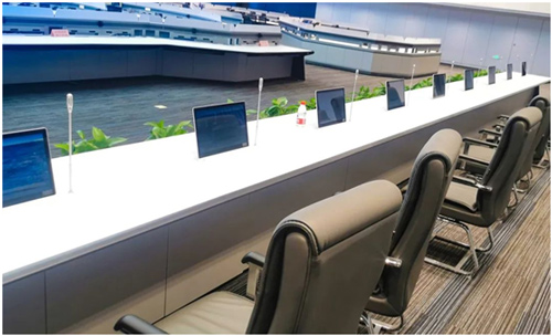 部分坐席显示单元采用了智能升降触摸屏,坐席协作系统可完美兼容,通过全触控的操作方式即可进行显示信号切换,坐席间信号的推送与调取。