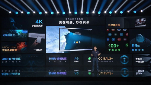 在本次发布的新产品华为协作平板,旨在让更多的会议室,享有智能化的工作方式,让更多的教室,享受到高效而且健康的互动教学体验。新产品融合了柔光护眼、华为变屏,智绘妙笔等一系列黑科技,集合海量专属大屏应用,端云协同,加速企业办公的智能升级。