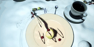 《冰淇淋甜点》厨师把食客带到雪地。从冰屋里爬出来。然后,厨师在雪地上堆出冰淇淋,将雪橇上的覆盆子撒了上去,紧接着是巧克力酱、鲜奶油、花生粉,之后突然倒地光荣牺牲了。