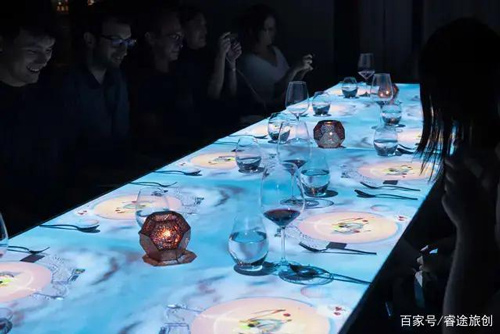 第七感餐厅颠覆了传统餐厅单一的味觉体验,将视觉、味觉、听觉的全方位感官体验全面升级。