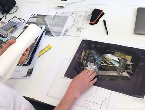 空间的吊顶实际上是一个呈现了拱形的形状,并且在上面设置了投影设备。可以看到设计的图纸。