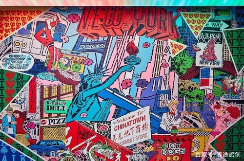 进门后呈现的是一个画廊空间,会邀请艺术家在这里进行创作。下图是日本艺术家 Lady Aiko 所做的彩色涂鸦风格插画艺术展。