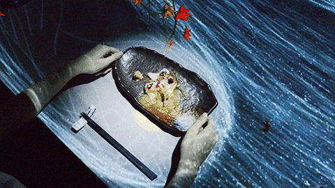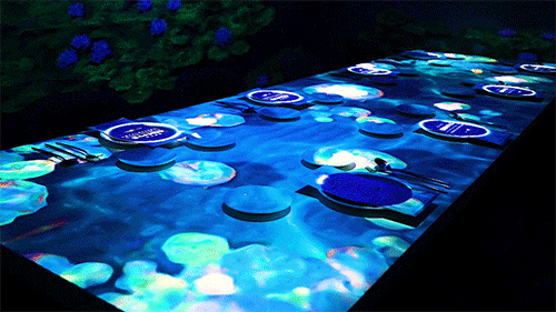不仅如此,投影图像还会受到就餐者行为的影响。当用餐者移动盘子位置时,“水流”也会相应的改变方向。