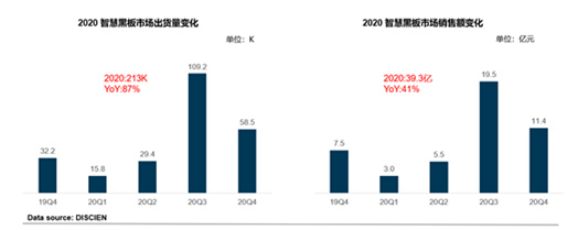 相比之下,智慧黑板同样呈现出激增态势。2020年智慧黑板在义务教育中快速替代教育平板,2020年总出货量213K,同比增长87%;全年销售额39.3亿元,同比增长41%,迎来爆发式增长。