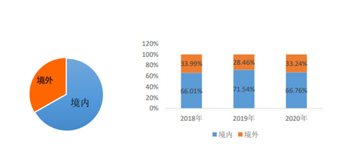 当然,除国内市场之外,鸿合科技也注重在海外市场的布局,旗下“newline”品牌专门面向海外的教育和国内商用市场。鸿合科技认为,海外的教育市场在政府长期计划支持、学校需求稳定增长的背景下具有良好的前景,市场可拓展范围较大,公司的市场开拓情况进展良好。北美、欧洲和亚洲多国政府重视学校的信息化建设,先后启动了相关项目并给予配套资金,用以支持学校对智能交互显示产品的采购和应用。公司将依托品牌优势、技术优势、产品质量优势,逐步增强国际竞争力,进一步扩大海外的教育市场占有率和品牌影响力。2020年鸿合科技境内、境外营收占比分别为66.76%、33.24%,海外市场规模较上一年度相比略有提升。