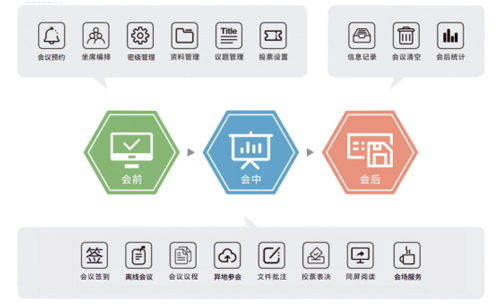 色功能:会前功能:预约会议、向导创会、密级管理、文件管理、会场中控;