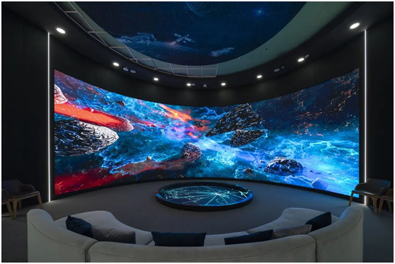 值得一提的是,在穹幕影院采用了150°环幕4000*15000超大4K高清LED显示幕直面观众,通过巨幕和地下管廊结合的方式打造成沉浸式体验区,传递科技进步融合汇聚的理念。