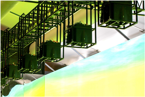 “盛世长卷”是展馆最大的独立单元,采用22台巴可G60系列投影机。以11x2的组合方式直线排列,墙面和地面相呼应,地面配合红外设备与观众实时互动。