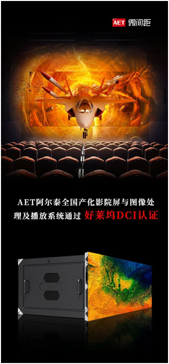 喜讯!东莞阿尔泰显示技术有限公司电影屏,通过好莱坞DCI认证!此次进行认证的LED影院屏由AET阿尔泰自主研发生产,图像处理系统由AET阿尔泰与国内系统和播放器公司共同研发生产,实现全国产化!AET阿尔泰由此成为国内首家实现LED影院屏和图像处理及播放系统全国产化,且通过好莱坞DCI认证的中国企业!