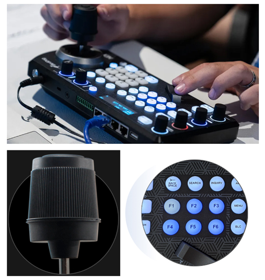 全球首台Full NDI控制键盘,支持“混控”(多接口+多协议+多品牌),同时控制255个摄像机。设计遵照人体工程学,融入自由的三向摇杆,柔软的触感按键,让键盘的操作体验也能很美好。