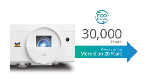 LS550WH提供30000小时光源寿命,每天使用 4小时,用户可使用超过20年,免于更换灯泡,同时对比灯泡投影机有更高的光效,更加节能环保,高寿命、低维护成本,为用户保驾护航。