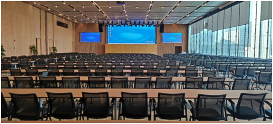 大型报告厅具有面积大、纵深长的特点,一厅多用,能同时容纳四五百人以上,常用于企业(视频会议、专题培训、技术研讨、文化活动等)及高校(学术报告、专家讲座、文娱演出、毕业典礼、技能大赛等)。