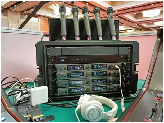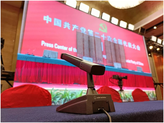 本次大会新闻中心现场使用铁三角5000无线系统整体方案以及AT881TL作为同传系统专用翻译话筒,稳定、高效、准确传达现场的一言一语。