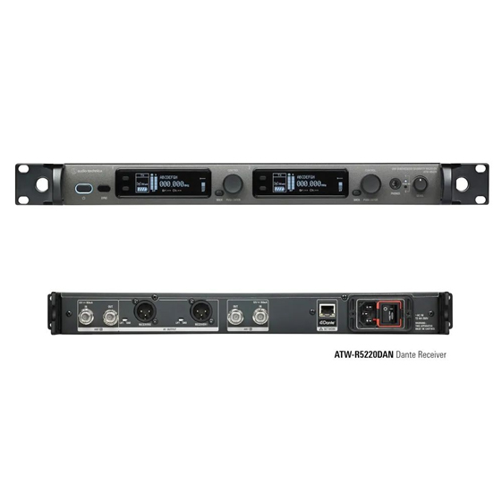 ATW-R5220双通道接收机后面板设有两个卡农式平衡输出,而另一型号ATW-R5220DAN除卡农式平衡输出外,更配置一个Dante网络音频输出。