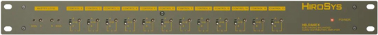 高集成度的HB-DA6EX,具有2路卡农及6.3mm兼容的平衡输入及12路电子平衡输出。每路输出可个别由前面板上的肘节开关设定为接收A通道或B通道的信号输入,或设定为A和B信号混合的单声道信号。