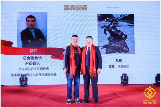 声光视讯行业联盟代表总会副会长、沪芒会长徐江,为本届大会赠送礼物并送上祝福。