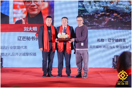 声光视讯行业联盟代表辽芒会长王文江先生,辽芒副会长刘大明先生,现场为本届大会赠送辽宁岫岩玉礼物,寓意着协会会员鸿运当头、聚福聚财、财源广进 、生生不息。