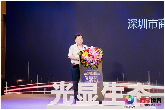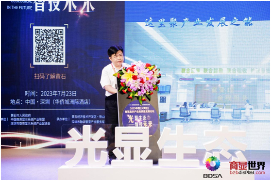 深圳商显产促会郭德轩会长表示“当前世界正处在不确定的未来经济环境大变革中,智慧显示、光电显示行业亟需抱团取暖。深圳商显产促会作为影响全国、辐射海外的国际性商用显示行业社会组织,此次论坛在黄石市人民政府的大力支持下,联合中国商显联盟、迪显咨询、商显世界等机构媒体共同举办,是显示生态高质量发展中的又一重要举措,也是积极响应支持民营经济发展的重要活动。未来,中国商显联盟、深圳商显产促会将继续积极承担政府职能工作转移,优质服务行业、会员单位、行业用户、社会,为显示行业的高质量发展发挥积极力量与保驾护航。”