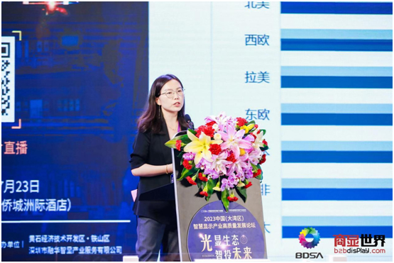 直击行业趋势,主旨演讲环节。北京迪显信息咨询公司尹华首席分析师作了《2023全球显示产业格局及发展趋势解读》主题分享;TCL华星张露市场总监作了《新显示技术产品以及产能发展,华星对显示行业发展趋势和观察》主题分享;瑞芯微电子股份有限公司杨泽辉商显总监作了《瑞芯微智慧商显解决方案》主题分享;广州林电控股集团陈林董事长作了《智慧显示赋能实体企业转型》主题分享;上达电子(深圳)股份有限公司孙睿首席技术官作了《柔性电子助力高清显示》主题分享。5位行业专家共同围绕产业发展数据、趋势机遇、转型升级、新型显示、“保护知识产权,决胜市场未来”等行业关注的焦点、热点、重点等议题进行了深入的分享,在场的嘉宾们都大有所获,碰撞衍生出更多的创意想法,干货满满,不虚此行。