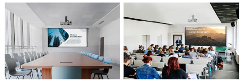 外形上,LS711W和LS711HD形外观小巧、体量轻便,移动起来不会费太大的力气;采用白色外观配色,时尚又大气,可以轻松融入各种商务办公环境,并拥有高流明亮度,可以在白天开灯的环境下仍然清晰可见;再加上3000000:1 的对比度,结合高清分辨率,显示出锐利的文字和图标,画面细节清晰可见,画质细腻平滑,能轻松应对会议室、教室等明亮的环境场所,为用户提供了优质的观看体验;两款新品均配有短焦投影机,其中LS711W配有0.521短焦投射比,而LS711HD配有0.496短焦投射比,仅需1.1米的投射距离就能投出一个100寸的大屏幕,相较于长焦投影机,短焦投影机不仅能够在小空间中投射出大画面,还可帮助有效减少光路被遮挡的情况,为用户提供更灵活的大屏体验,可以满足多数商务教育用户的演示需求。